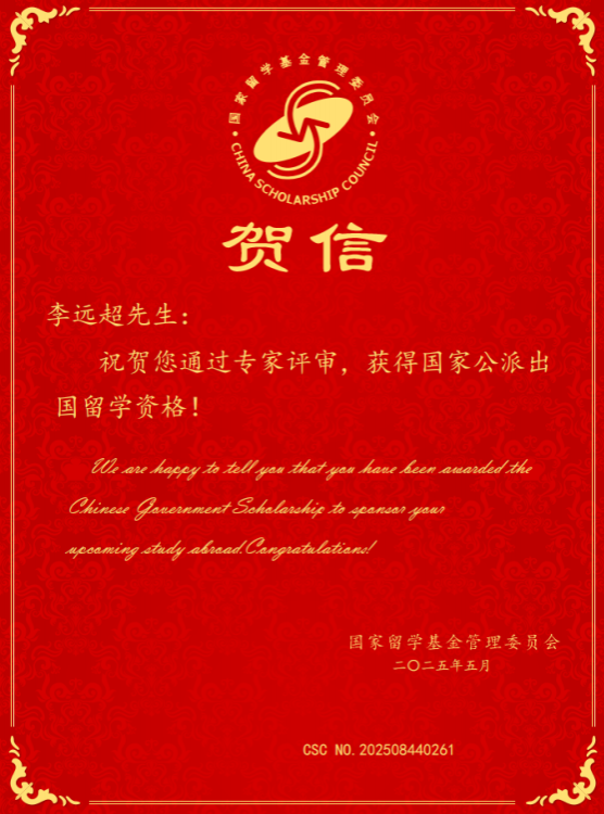 近日,国家留学基金管理委员会公布“2025年国家建设高水平大学公派研究生项目”录取结果,437ccm·必赢国际李远超、吕宗泽等7名研究生成功获得国家留学基金委公派研究生项目资助,将分赴美国、德国、意大利、澳大利亚等国家的世界一流学府及一流科研机构,开启留学之旅。此次学校国家公派留学研究生获资助人数较近年显著增长(2023年获资助3人,2024年获资助2人),录取率达100%。近年来,437ccm·必赢国际研究生陆续公派分赴美国斯坦福大学、哈佛大学、耶鲁大学等世界一流知名高校留学,为学校新百年发展开新局、开好局注入新动能。
